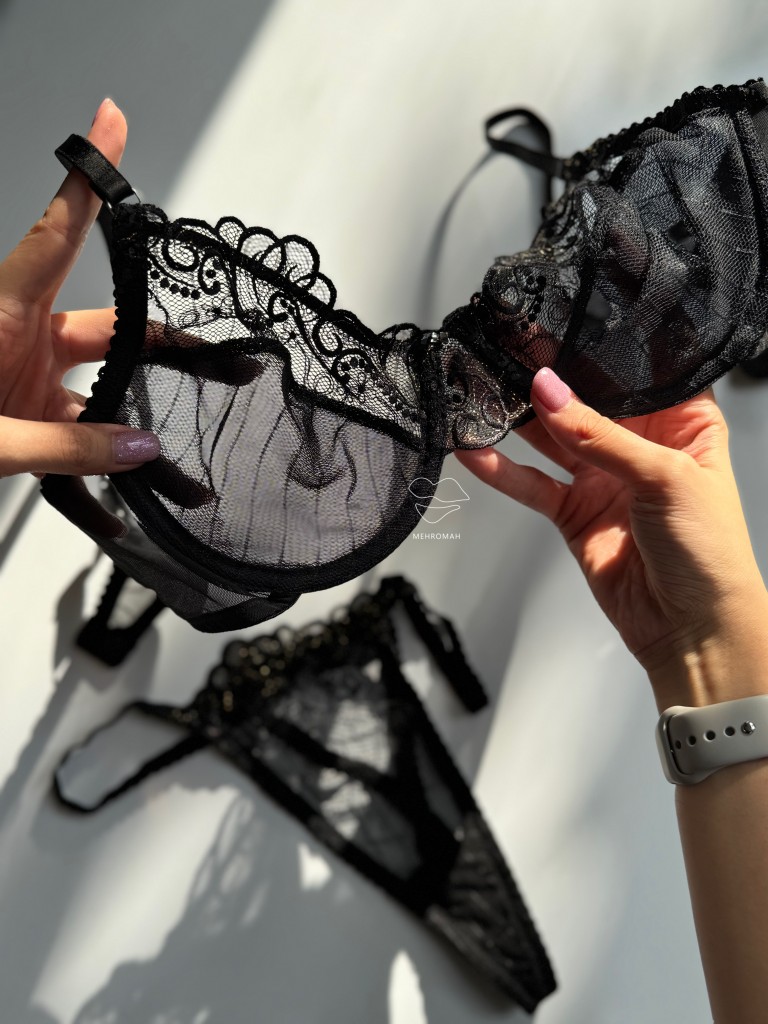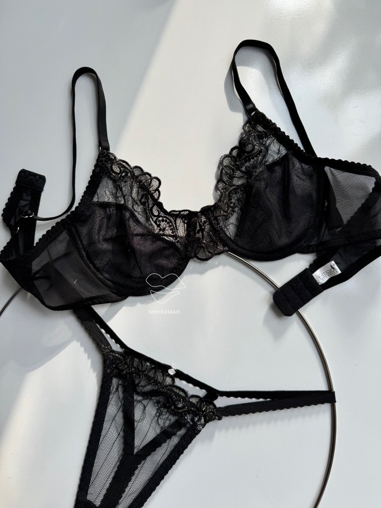 این ست شامل سوتین فنردار و توری است. قسمت بالاتنه شامل بند سرشانه رگلاژدار و قابل تنظیم است. پشت سوتین دارای دو قزن در سه ردیف است. رنگ مشکی و طلاکوب این ست، تنخور کار را لوکس و منحصر به فرد میکند. فنردار بودن این ست قابلیب حمایت از سینهها را دارد. شورت ست مدل لامبادا است که در قسمت باسن، تنخور پشت باز دارد. در قسمت وسط این بند شورت، اکسسوری حلقهای به کار رفته است. فاق شورت نخی و ضدحساسیت است. کمر شورت کش کار شده که از کشسانی خوبی برخوردار است. در قسمت دو طرف بند سینه نیز، کش به کار رفته که کشسانی خوبی به سوتین نیز میدهد. این ست شامل دو سایز L مناسب 75.80 و XL مناسب 85.90 با سایزبندی شورت L,XL در سایت مهروماه شاپ آماده سفارش شما عزیزان است. خرید ست شورت و سوتین توری، همراه مناسبی برای انواع استایل ست و لباس زیر موقعیتهای خاص است.