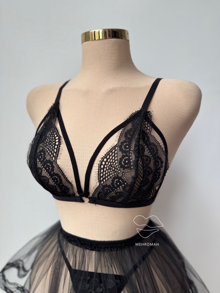 طراحی این محصول با ویژگی ترکیب گیپور دانتل و حریر شیشهای یکی از جذابترین لباس خوابهای فانتزی زنانه است. بالاتنه این محصول بدون فنر است و مدل کاپ مثلثی دارد. بند سرشانه رگلاژدار است. بالاتنه ست بدون قزن است و قسمت باند سینه کش کار شده است. پایین تنه محصول مدل دامنی دارد و در قسمت کمر نیز کش کار شده است. شورت این ست مدل لامبادا دارد که تنخوری زیبا ارائه میکند. شورت فانتزی لامبادا در قسمت باسن پوششدهی ندارد و در خط باسن قرار میگیرد. این محصول فری سایز و کشی مناسب 36.38 تا 44 از طریق سایت مهروماه شاپ قابل تهیه است.