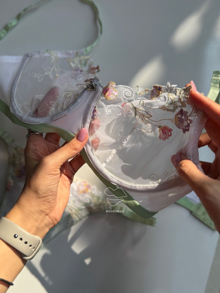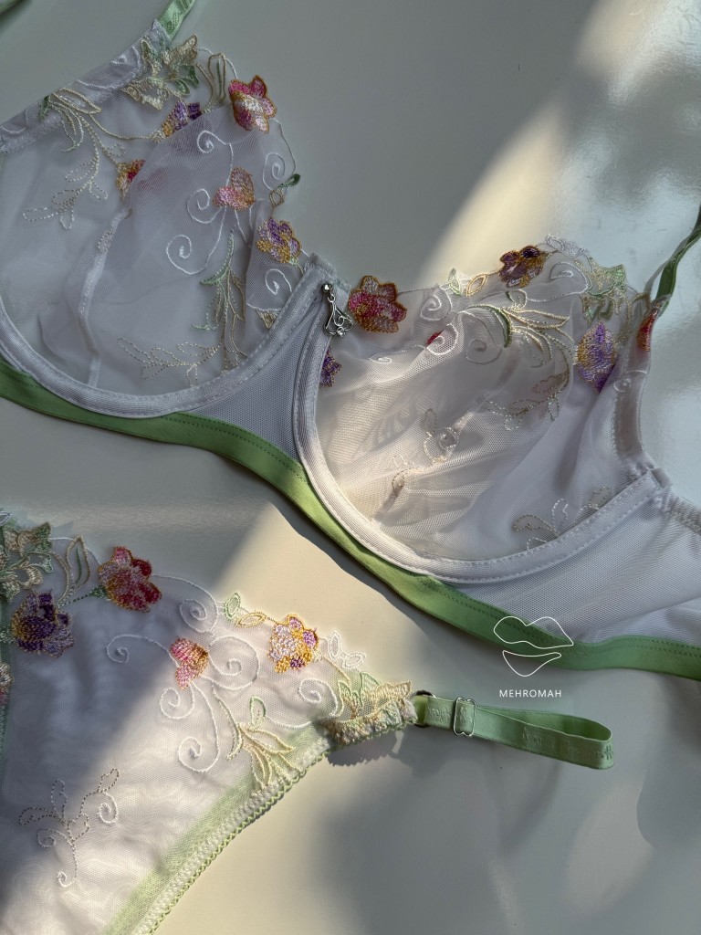 این ست توری با گلدوزی گلدار، یکی از زیباترینها در سبد خرید لباس زیر زنانه است. کاپ سینه این محصول فنردار است که تضمین لیفت سینه و خوش فرمی سینه را به همراه دارد. پشت سوتین دارای دو قزن در سه ردیف است و بند سرشانه رگلاژدار و قابل تنظیم با اندازه بدن است. این محصول از برند لمون، دارای اکسسوری آویزی وسط حلقه است. شورت ست شامل بند کمر رگلاژدار و قابل تنظیم است. فاق شورت نخی و ضدحساسیت است. این شورت مدل بکلس دارد و در قسمت پشت کمر پوشش کمی دارد که جذابیت محصول را بالا میبرد. برای سفارش ست شورت و سوتین توری دشت گلها شامل سایزبندی 75.80.85.90 از طریق سایت مهروماه شاپ میتوانید سبد خرید خود را تکمیل کنید.