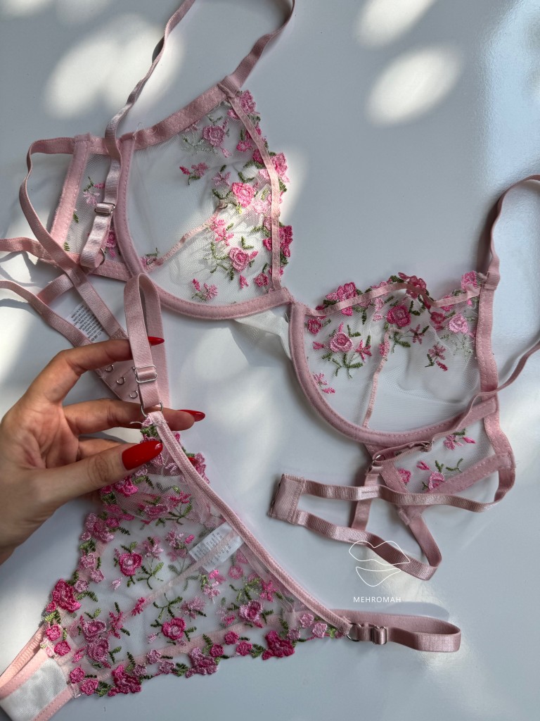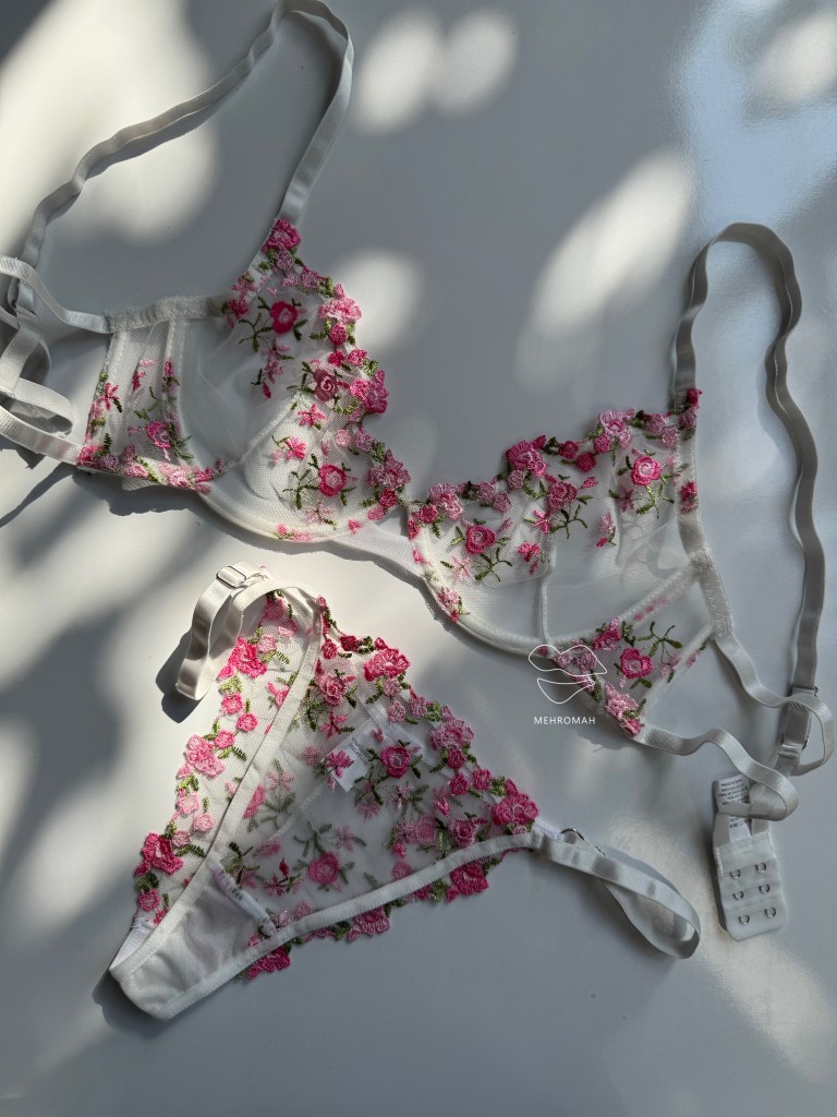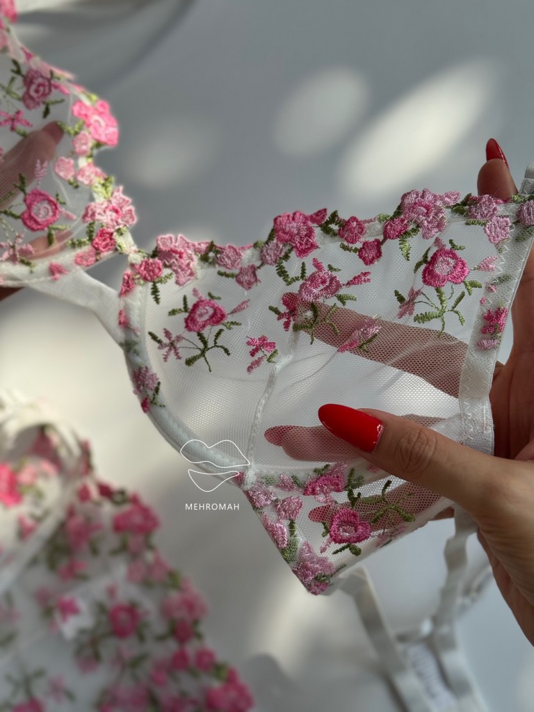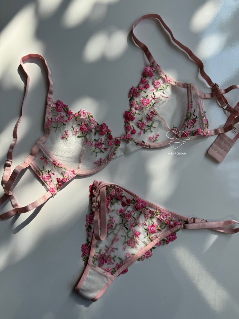 این ست پینترستی محصولی دخترانه و زیبا است. این ست از جنس توری حریری است و با گلدوزی ظریف و زیبا تزئین شده است. کاپ سینه ست فنردار است و قسمت فنردار کاپ، لایه مخملی کار شده که ظرافت و جزئیات باکیفیتی به محصول میبخشد. سوتین ست شامل دو قزن در سه ردیف است. پشت سوتین مدل دو بندی دارد. بند سرشانه رگلاژدار است و قابلیت تنظیم اندازه دارد. شورت ست مدل برزیلی، بندهای روی کمر قابل تنظیم با رگلاژ است. فاق شورت ست نخی است و ترکیبی از تور شیشه ای گلدوزی شده است. این ست زیبا و پرنسسی همین حالا از طریق سایت مهروماه شاپ قابل خرید است. سایزبندی ست شامل سایز M مناسب 70.75 کاپ b، سایز L مناسب 75.80 کاپ b و سایز XL مناسب 80.85 کاپ b، سایز شورت نیز مظابق سایز بالاتنه است، و رنگبندی سفید، صورتی لایت و سرخابی است.