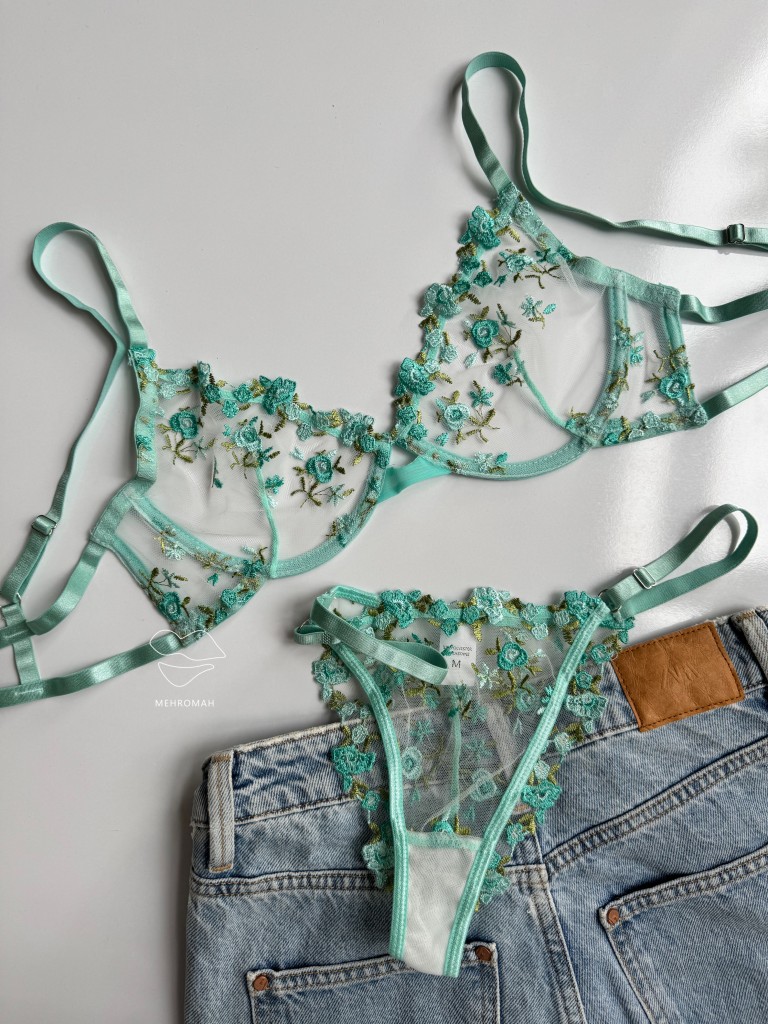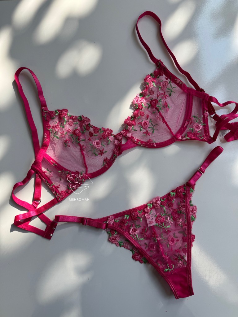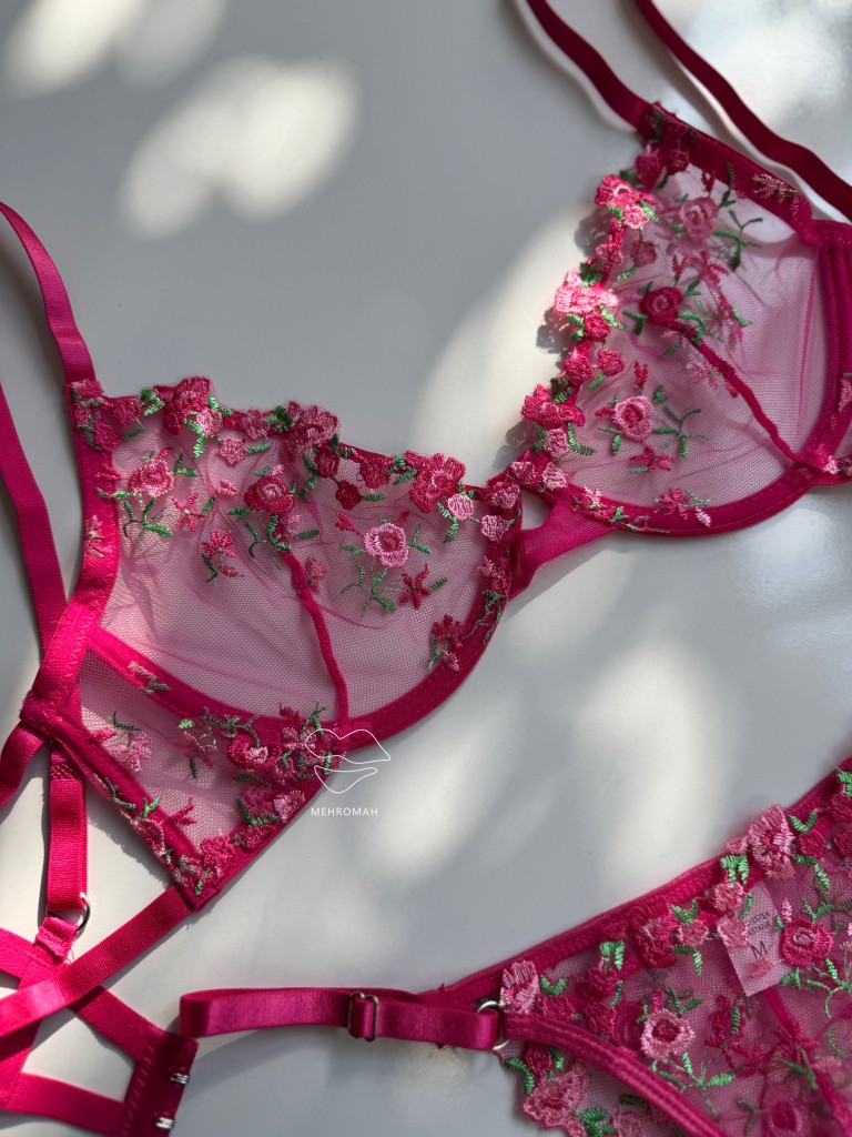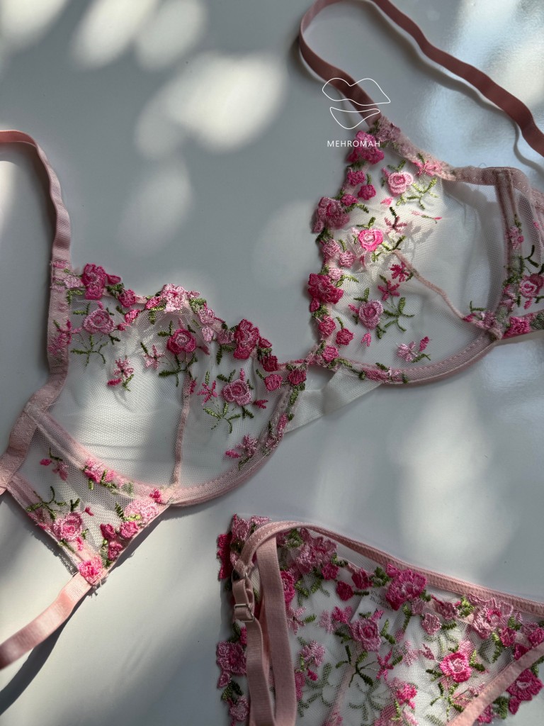 این ست پینترستی محصولی دخترانه و زیبا است. این ست از جنس توری حریری است و با گلدوزی ظریف و زیبا تزئین شده است. کاپ سینه ست فنردار است و قسمت فنردار کاپ، لایه مخملی کار شده که ظرافت و جزئیات باکیفیتی به محصول میبخشد. سوتین ست شامل دو قزن در سه ردیف است. پشت سوتین مدل دو بندی دارد. بند سرشانه رگلاژدار است و قابلیت تنظیم اندازه دارد. شورت ست مدل برزیلی، بندهای روی کمر قابل تنظیم با رگلاژ است. فاق شورت ست نخی است و ترکیبی از تور شیشه ای گلدوزی شده است. این ست زیبا و پرنسسی همین حالا از طریق سایت مهروماه شاپ قابل خرید است. سایزبندی ست شامل سایز M مناسب 70.75 کاپ b، سایز L مناسب 75.80 کاپ b و سایز XL مناسب 80.85 کاپ b، سایز شورت نیز مظابق سایز بالاتنه است، و رنگبندی سفید، صورتی لایت و سرخابی است.
