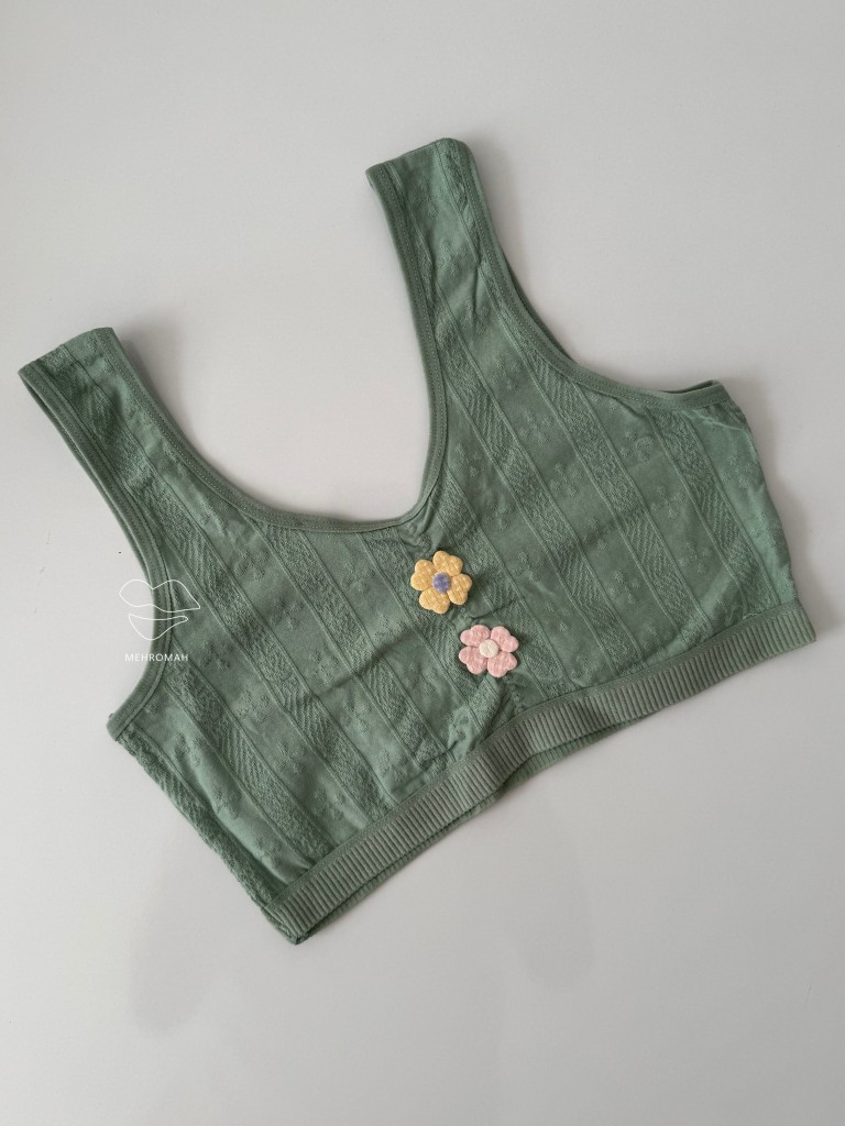 نیم تنه نخی برند TUFAHA از جنس پارچه نرم و راحت تولید شده است. این محصول شامل رنگبندی است و در قسمت جلوی نیم تنه دو گل برجسته کار شده است. نیم تنه نخی دارای کشسانی است و بدون پد است. این محصول بدون قزن و رگلاژ است و در پشت نیمتنه نیز کشی کار شده است که تنخوری راحت به محصول میدهد. سایزبندی این محصول فری و مناسب 34.36.38 و شامل شش رنگبندی آجری، سبز، کالباسی، طوسی، صورتی و لیمویی دوست داشتنی و پاستیلی در مهرو ماه شاپ آماده سفارش است.