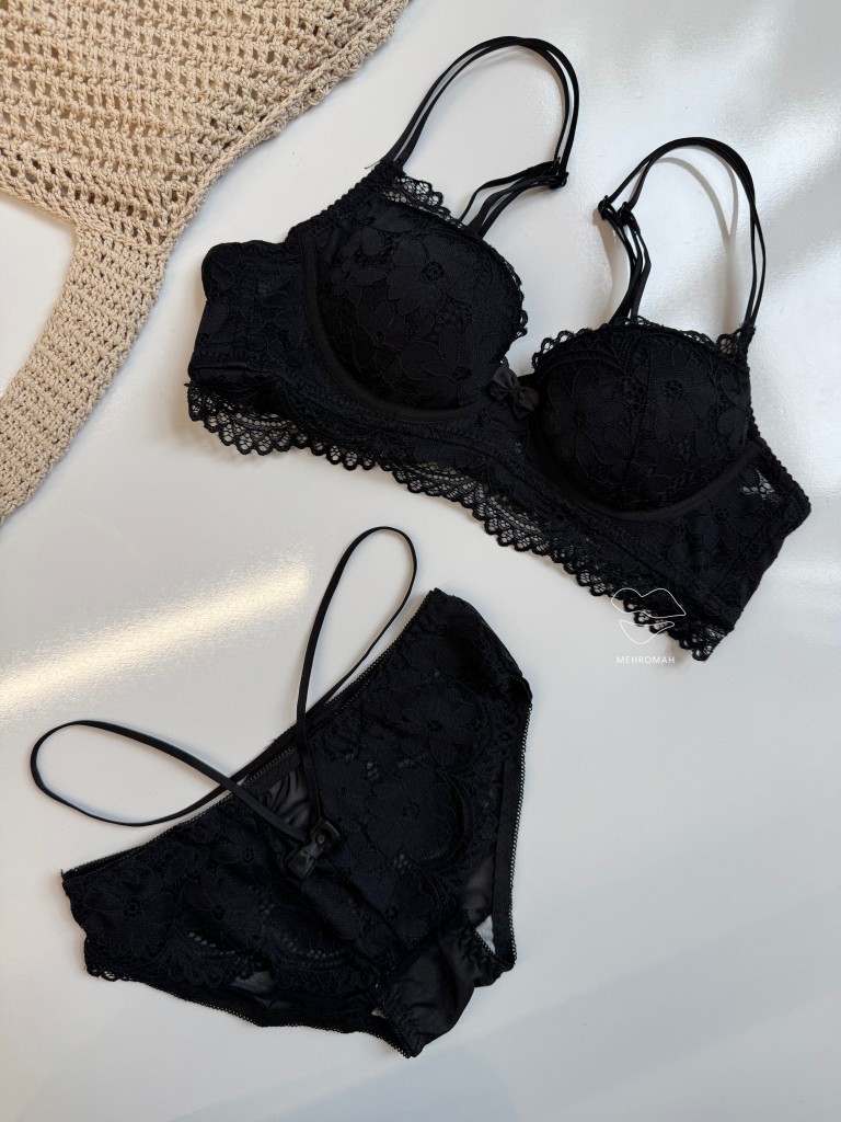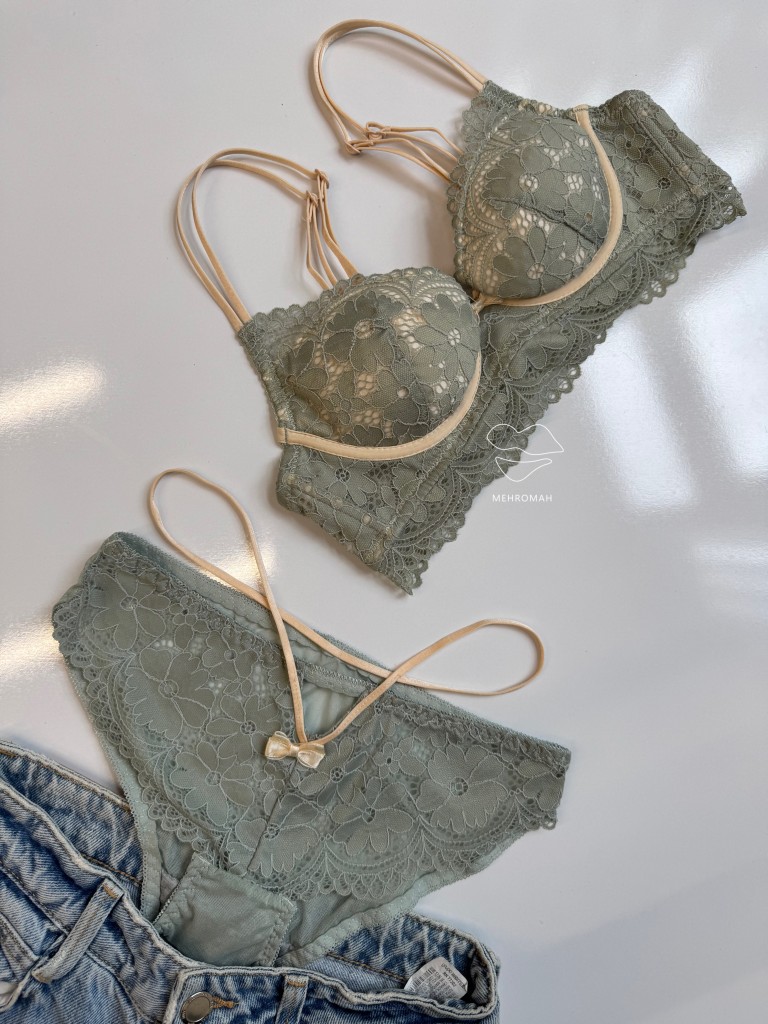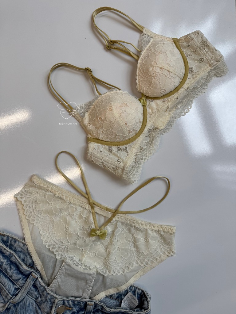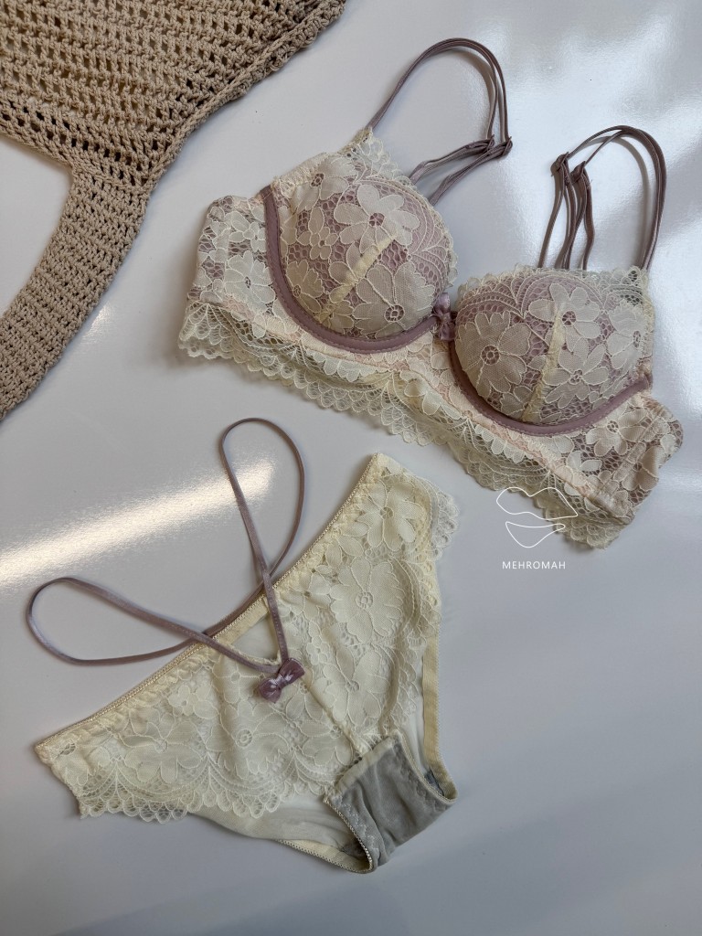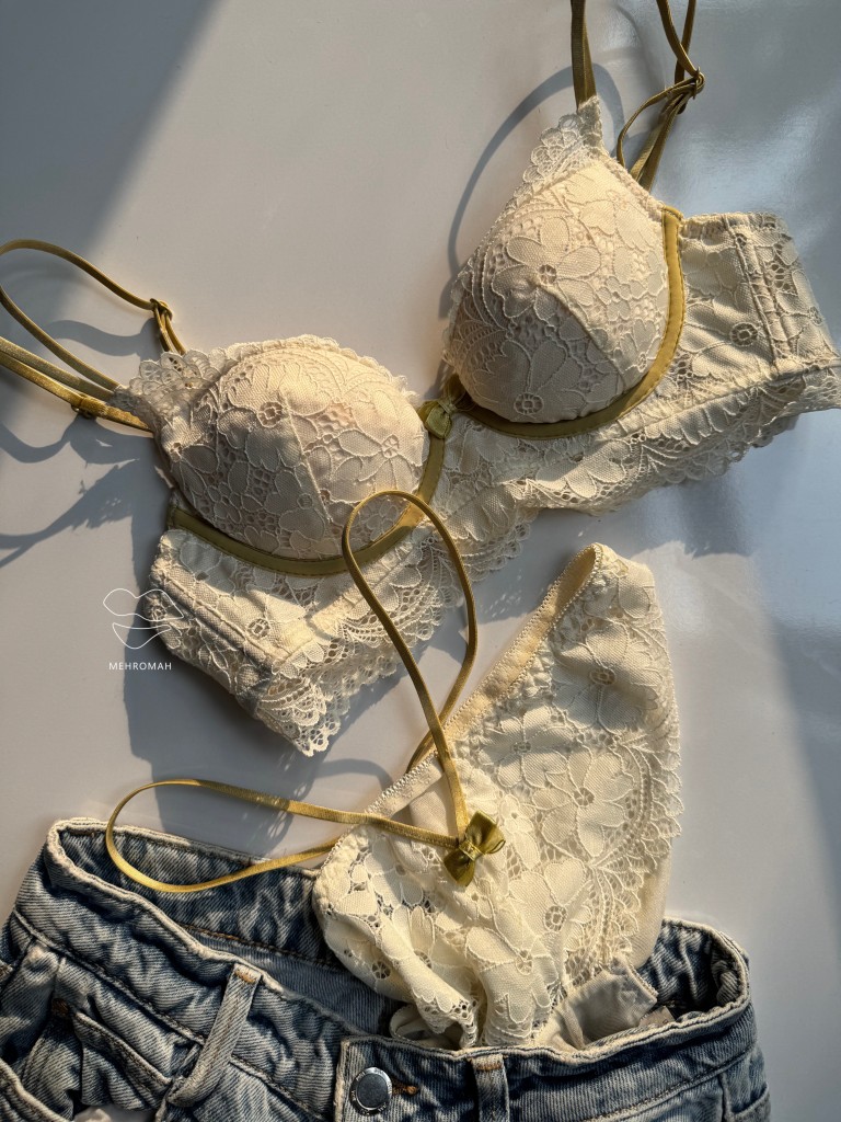 سایز کوچیکها و طرفداران محصولات زیبا و پینترستی، این ست سوتین فنردار و شورت گیپوری برای شماست. سوتین ست مدل گیپوری است و در پشت سوتین چهار ردیف قزن سه تایی برای تنظیم اندازه تعبیه شده است. کاپ سینه محصول پددار متحرک است. پد سینه پوش آپ دار است که فرم جذابی ایجاد میکند. این ست دارای مدل دوبندی رگلاژدار است. شورت ست مدل اسلیپ دارد، این محصول با فاق نخی، امکان استفاده به صورت روزانه را دارد. سایزبندی این محصول مطابق سایز کرهای است؛ شامل سایزهای 75.80.85 مناسب کاپ A و B ظریف از طریق سایت مهروماه شاپ قابل سفارش است.
