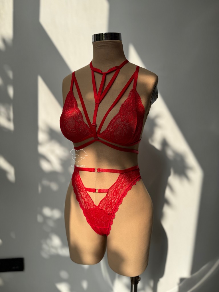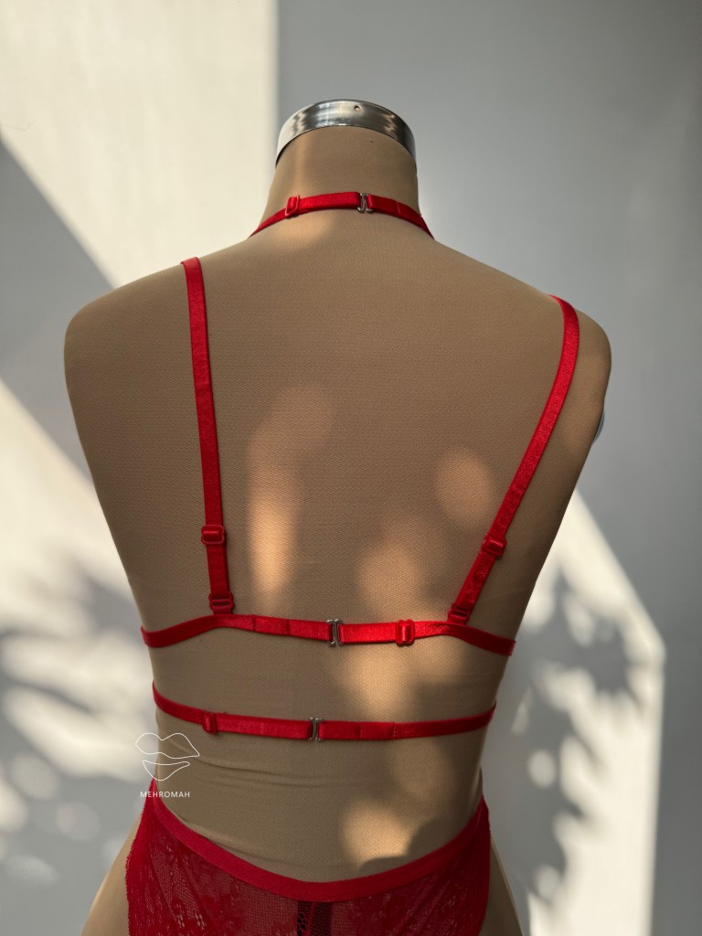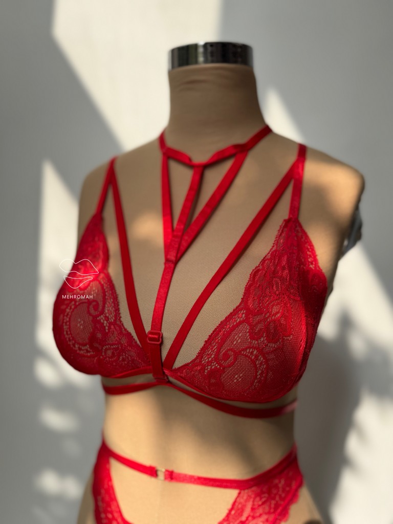 این محصول یکی از آیتم های لباس زیر فانتزی زنانه است. کاپ سینه هارنس مثلثی است و از جنس گیپوری با تنخوری ناز است. پشت سینه این هارنس بند باریک رگلاژدار و قابل تنظیم تعبیه شده و با تک گیره و سگک بسته میشود. این بند ها رگلاژدار و قابل تنظیم هستند. بندهای سرشانه هارنس بالاتنه نیز رگلاژدارند. ویژگی جذاب این ست هارنس سینه دارای بند فانتزی چوکر گردنی است. این بند جذابیت هارنس را بالا میبرد. از وسط سینه رد میشود و تنخوری خاص را به بالاتنه میدهد. بندهای چوکر گردنی نیز رگلاژدار و قابل تنظیم با اندازه بدن هستند. هارنس سینه فانتزی یکی از جذاب ترین استایل ها برای زیر لباس های یقه باز است. این محصول تک رنگ قرمز و فری سایز مناسب سایزبدنی 38 تا 44 و سینه 80 به بالا در مهروماه شاپ آماده سفارش شما عزیزان است.