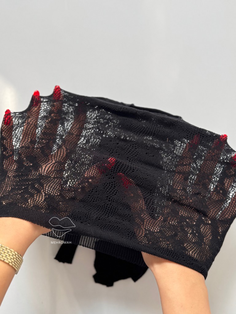 بالاتنه این بادی مدل نیمتنه توری و آستین دار است. گردن این محصول باز است. پایین تنه ست دامنی و جذب است که تنخوری خاصتر از سایر بادی فانتزی ها دارد. جنس این محصول توری و بدن نماست. بالاتنه این محصول آستین دار است و روی آستین مدل زنبوری درشت دارد. بادی فانتزی زنانه را میتوانید به عنوان لباس زیر فانتزی مناسب شب استایل کنید. این محصول در سایت مهروماه شاپ و شامل فری سایز مناسب 34.36 تا 42 موجود است.