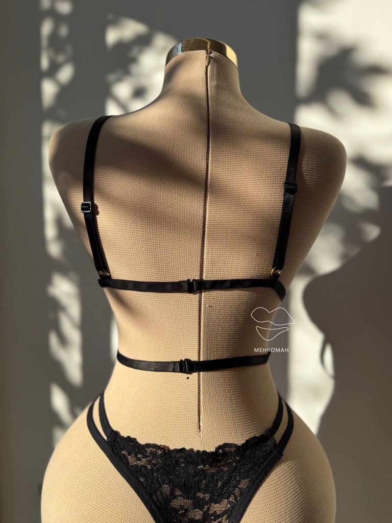 این هارنس بالاتنه زنانه، یکی از پر طرفدارترین محصولات است. هارنس شیشه ای دارای کاپ مثلثی از جنس گیپور دانتل است که در موقعیت های فانتزی با تنخوری بدن نما زیبایی محصول را دو چندان میکند. هارنس سینه از آن دسته محصولات اغوا کننده و زیباست که طرفداران زیادی دارد؛ میتوانید این محصول را با انواع بافت های یقه باز نیز بپوشید. در قسمت قفسه سینه این محصول مدل هارنس روی سینه کار شده که با یک اکسسوری حلقه ای گلد رنگ طراحی شده که هارمونی زیبایی ایجاد میکند. پشت هارنس نیز تک گیره سگک دار برای باز و بسته کردن و بند رگلاژدار برای قابلیت تنظیم انداره دارد. این محصول تک رنگ مشکی و فری سایز مناسب سایز بدنی 40 تا 44 با کاپ سینه 80 توری به بالا در فروشگاه مهروماه شاپ آماده فروش است.