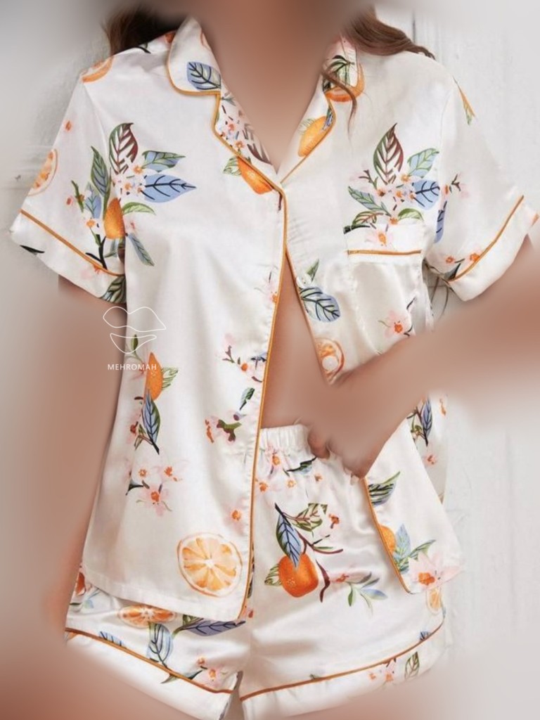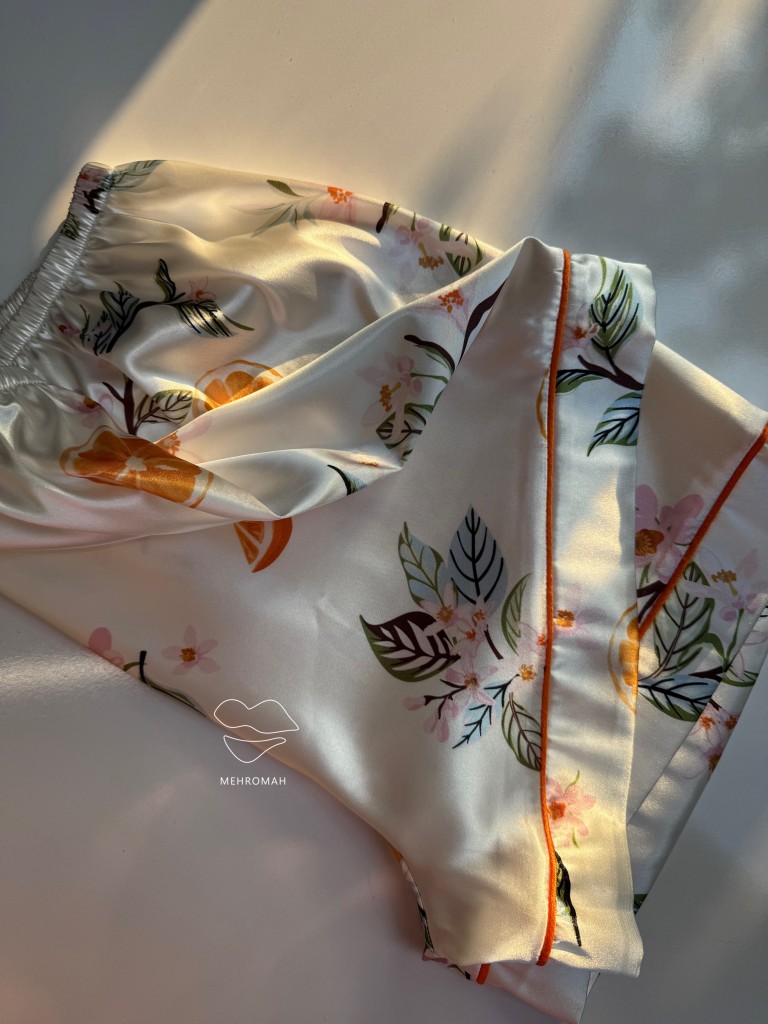 پیراهن و شلوارک ساتن گل لیمو کد 953
