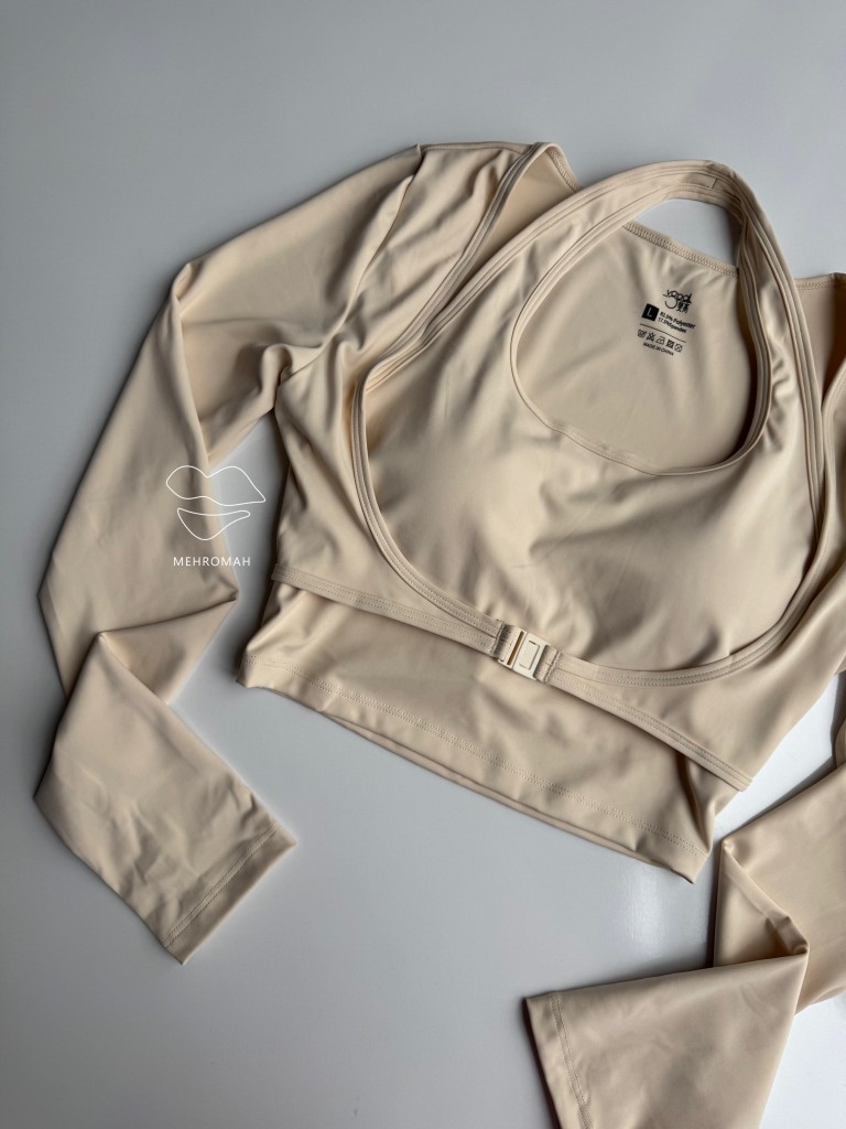 این محصول مدل آستین بلند و گردنی دارد. یکی از جذابترین ویژگیهای این نیم تنه اسپرت، استفاده از سگک پلاستیکی برای جمع کردن دو طرف سینه و تنخوری جذابتر است. کاپ لایه دار این نیم تنه دارای لایه پد نازک است. جنس نیم تنه اسپرت فلامنت است و به عنوان محصولی ورزشی، محصولی خاص با انواع استایل استفاده میشود. سایزبندی این نیمتنه شامل سایزهای L مناسب 36.38 فیت و سایز xL مناسب 38.40 و سایز 2XL ماسب 42.44 با رنگبندی بنفش، کرم و مشکی از طریق سایت مهروماه شاپ قابل تهیه است.
