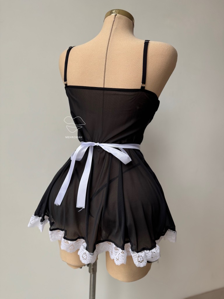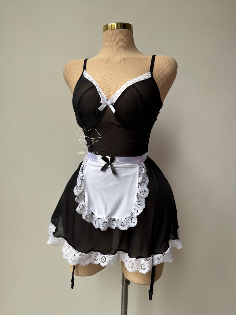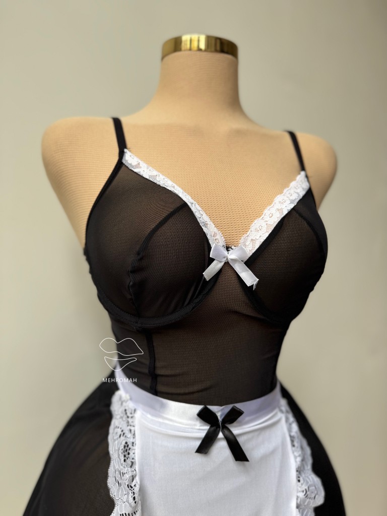 کاستوم خدمتکاری از آن دسته لباسخوابهای فانتزی و بسیار هیجان انگیز است. این کاستوم میتواند پیشنهاد هیجان انگیزی برای روابط باشد. کاستوم خدمتکاری، از یک پیراهن دامنی تشکیل شده که بندهای سرشانه رگلاژدار و قابل تنظیم هستند. کاپ سینه این محصول فنردار است که فرم خوبی به سینه میدهد. جنس این محصول حریر نخی و دارای کشسانی است. کاستوم خدمتکاری دارای پیشبند مدل گرهای است. پیراهن محصول پایین توردار است، این محصول ترکیبی از دو رنگ سفید و مشکی است. در پک این ست کاستوم فانتزی، پیراهن هولدر دار، یک جفت جوراب فیشنتی بالازانو، شورت لامبادا تعبیه شده است.