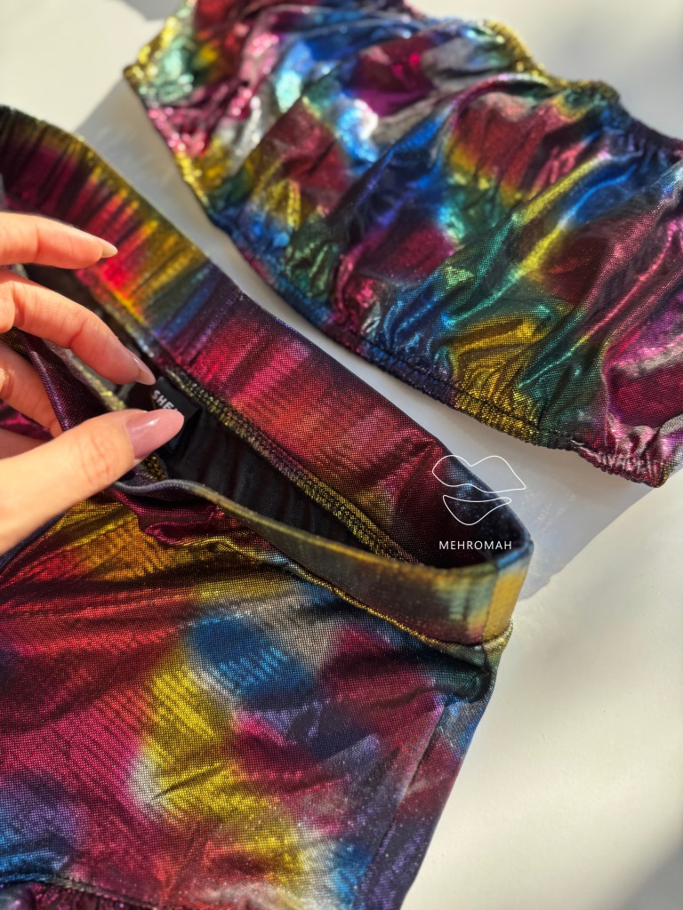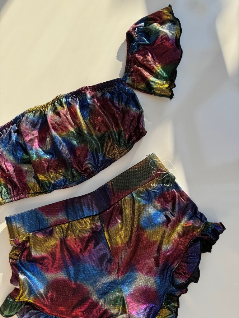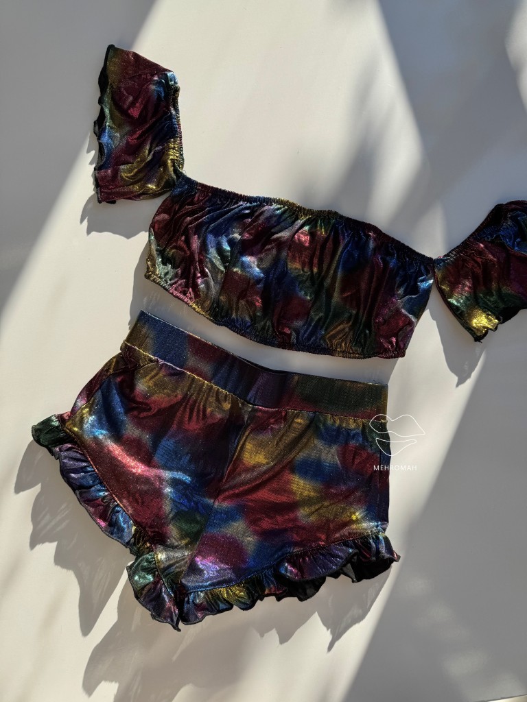 ست نیم تنه و شورتک هلوگرامی کد 1093